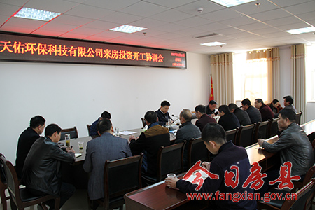 今日房县网讯 记者毛俊杰 报道:3月2日,我县召开湖北天佑环保科技有限公司来房投资项目开工专题协调会。县委副书记、县长纪道清,副县长丁选清,县政府党组成员熊祖友出席会议。县招商、国土、环保、住建、供电、南水北调办等部门负责人参加会议。