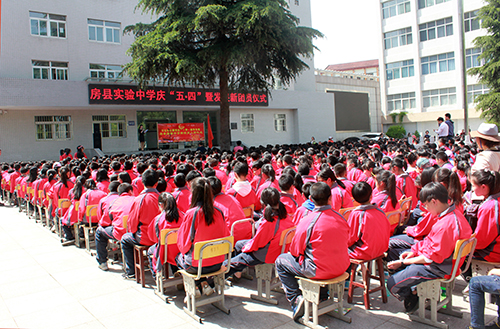 今日房县网讯 记者毛俊杰 报道:“我志愿加入中国共产主义青年团,坚决拥护中国共产党的领导……为共产主义事业而奋斗!”5月4日下午,在团县委联合县教育局举行的主题为“不忘初心跟党走·一学一做争先锋”庆“五·四”暨发展新团员仪式上,县实验中学280名新团员右手握拳,面向团旗庄严宣誓。副县长冉瑶函参加活动仪式并为新团员代表佩戴团徽。