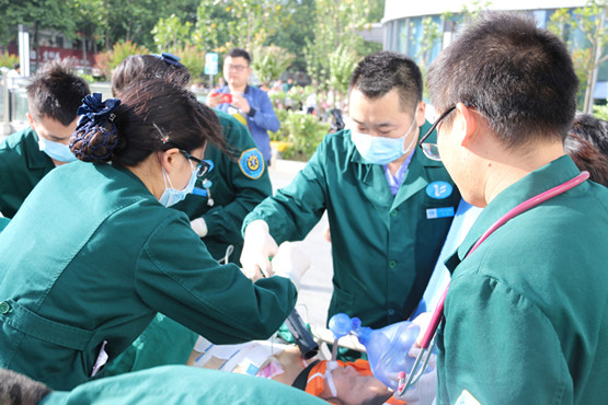 副院长柯尊宇(右一)听取会诊专家意见并现场指挥抢救