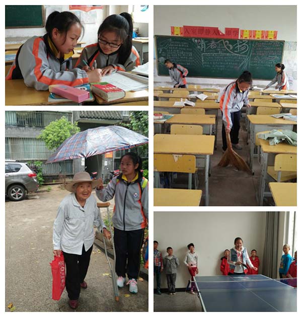 父母打工挣到钱了,想接她去广州读初中,让她接受更好的教育,但被她拒绝了。她说“作为你们的女儿,我不能和你们一起生活,我很难过。但同样的,爷爷奶奶年事已高,我走了,谁来照顾他们,让我来替你们尽孝道吧!……”父母拗不过她的性子,也就不再勉强了。在学校家长会上,满眼泪花的爷爷讲述此事时,很多家长都掉下了眼泪,爷爷说“我种了一辈子地,没啥出息,但老天给了我一个好孙女,我也知足了!”每当爷爷奶奶过生日时,她都要亲自制作一份小礼物,给他们一个惊喜,弥补爸爸妈妈不在爷爷奶奶身边尽孝的遗憾。