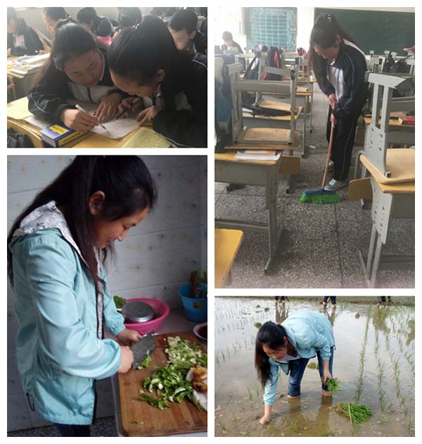 每当学校放周末,其他学生高高兴兴回家放松的时候,她除了完成规定的课业任务,还要帮助爷爷奶奶洗衣做饭、干农活、照料牲口。怕爷爷奶奶寂寞,还得动脑筋逗老人开心。