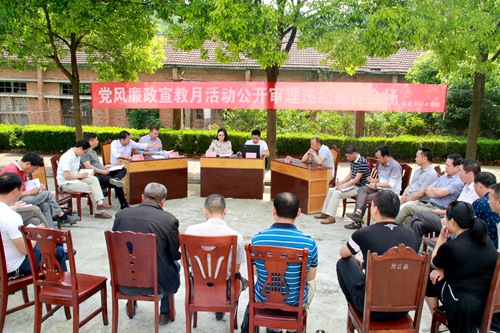 今日房县网讯 记者刘臣 通讯员黄朝远 报道:为纵深推进全面从严治党向基层延伸,进一步加强党内监督,5月25日,县纪委在农林场红旗村举行党风廉政建设宣教月警示教育活动,公开审理一起村干部违纪案件。部分乡村、机关干部现场旁听,接受警示教育。