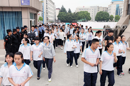 高考期间,县教育、公安、食药监、城管执法、供电、卫计等部门通力协作,为考试的实施提供了保障,确保了今年高考一切工作组织有条不紊,平稳顺利结束。(赵爱平 王玮 摄)