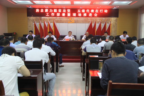 今日房县网讯 记者向强 报道: 6月9日,县人大常委会“聚力脱贫攻坚、五级代表在行动”工作部署暨现场推进会在化龙堰镇召开。县人大党组书记、常务副主任高明哲,县人大副主任李志权、谢永翔、李相明出席活动。