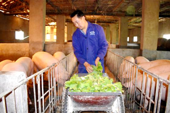 村民周义保现在有了时间照顾猪场年养猪300头