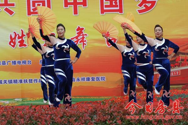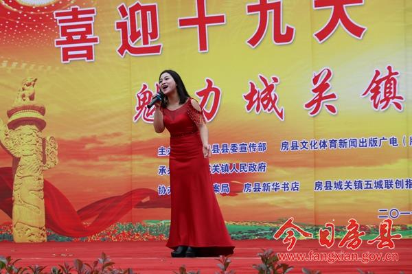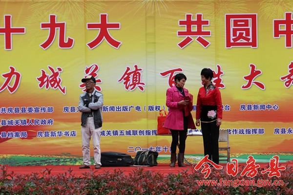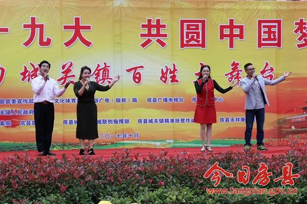 本次活动以“喜迎十九大 共圆中国梦”为主题,旨在以文艺活动的方式展示党领导人民群众努力奔小康的艰难历程和全县经济社会发展成果,传承和弘扬房县优秀民间文化,宣传社会主义核心价值观,喜迎即将召开的党的十九大。来自城关镇各村居、企业,红塔镇和保康县尧治河村文艺团体,带来了音乐剧、舞蹈、小品等20个精彩节目,为当地广大干部群众奉上了一场精彩的文化节目。 演出在气势磅礴的《威风锣鼓》中拉开帷幕,来自花宝小学的表演队用铿锵激昂的锣鼓敲出全县人民奋勇拼搏创造美好生活的热情和激情。舞蹈《说唱中国红》、舞蹈《鼓动中国》、舞蹈《祝福祖国》、国标舞《再唱山歌给党听》、歌曲《九儿》、歌曲《红歌串烧》,生动地表达了社会各界群众对党的浓浓恩情,对祖国的美好祝愿和祝福;广场舞《请到房县来》、音乐快板《如今城关在发展》、歌曲《山歌串烧》,在展示房陵文化魅力的同时,展现了全县人民团结奋进努力建设小康生活的坚定信心和决心;小品《婆婆也是妈》、《赌徒夜归》、《老有所养》,用一个个妙趣横生、接地气的故事潜移默化的向大家宣传了社会主义核心价值观;舞蹈《同在蓝天下》、《自由飞翔》、《花儿朵朵向太阳》在展示小朋友们天真灿烂天性的同时,也展现了社会主义接班人良好的精神风貌;三句半《医务工作赞》展现了新时代医务工作者良好的职业素养和精神风貌;演出在老城社区带来的经典红歌舞蹈《山丹丹花开红艳艳》中完美谢幕。