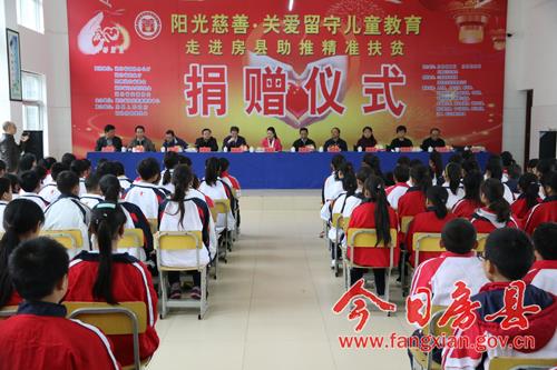 今日房县网讯 记者 王玮 通讯员 付培文 报道:17日是全国第4个扶贫日,湖北省阳光慈善物资中心积极响应省政协号召,助推精准扶贫,在化龙堰镇中学举办了“阳光慈善关爱留守儿童教育” 走进房县助推精准扶贫捐赠活动,向我县捐赠150余万元的教育和生活物资。