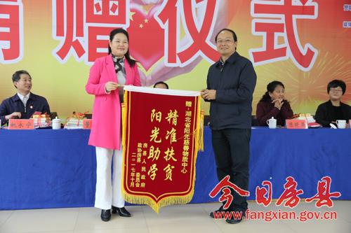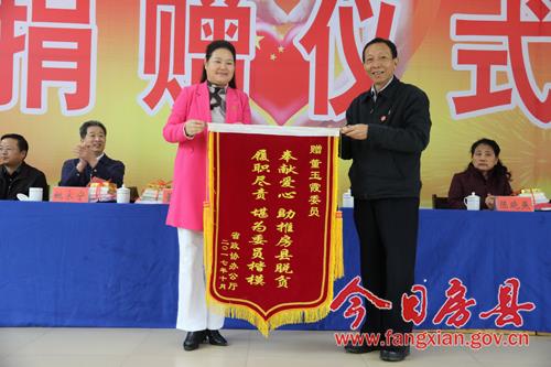 省政协秘书长、办公厅主任翟天山,省政协副秘书长姚永宁,湖北省阳光慈善物资中心理事长、主席董玉霞等出席捐助仪式。仪式上,县委副书记王家波致欢迎辞,县政协主席徐锦凤代表我县接受了捐赠,县委书记蔡贤忠向阳光慈善物资中心理事长、主席董玉霞回赠锦旗,翟天山向董玉霞授予荣誉锦旗。