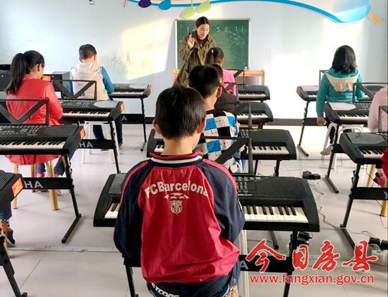 万峪河乡中心小学少年宫电子琴兴趣小组在上课