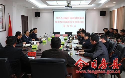 县委常委、常务副县长肖大有代表房县人民政府与湖北鑫资集团再生资源有限公司董事长赵顺亨签订了投资协议;赵顺亨介绍了项目投资情况;县环保局、经信局就服务项目作了表态发言。