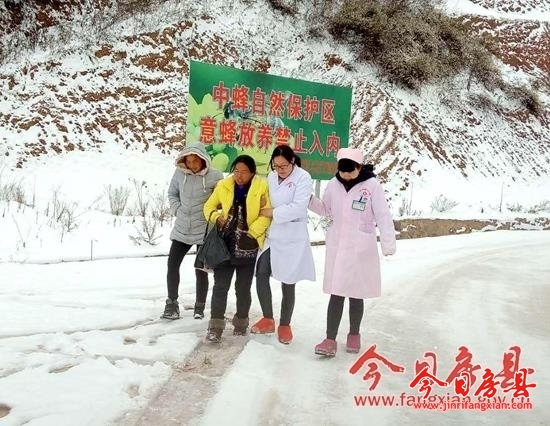 14点20分,县保健院响起了急促的铃声,门古寺镇红星村一名孕妇突然腹痛临产,请求救援。医护人员准备好抢救物品,坐上救护车呼啸而去。途中,随车的医护人员一边给家属打去电话进行抚慰,一边联系卫生院和村卫生室医生进行跟踪反馈。但是大雪封山,道路打滑,救护车在一段山坡上无法继续前行。医护人员二话不说,步行向孕妇家的方向奔去,寒冷的天气、没过脚踝的积雪让他们冷的瑟瑟发抖,就这样深一脚浅一脚的将孕妇接回救护车上,并顺利入住县保健院,现已分娩,母子平安。