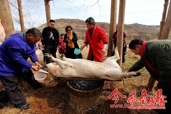 当日上午9时许,一辆大客车载着十堰市区的游客来到塘溪村村委会门前广场。这里早已装点成一个年货广场,现杀的猪、牛肉、山羊、土鸡,黄酒、精制魔芋、虎杖、雪梨等当地特色农产品应有尽有。