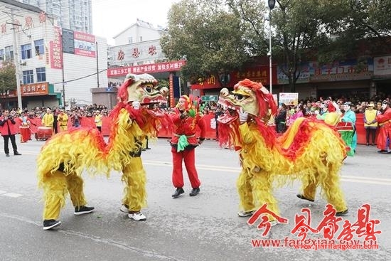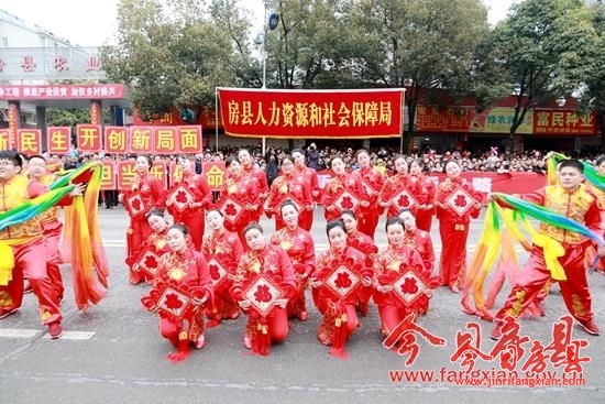 一大早,四面八方的群众涌向街头翘首以盼。上午八点四十分,巡游活动在白须老龙的开路中开始,精美的巨龙时而腾空跃起,时而盘旋游走,舞出了房县人的激情与奋进。“不忘初心,牢记使命,高举习近平新时代中国特色社会主义思想伟大旗帜”、“聚焦精准扶贫,共建小康社会”的标语口号振奋人心;舞龙、舞狮、划旱船、扭秧歌、腰鼓等民俗表演独具特色、惟妙惟肖,你方唱罢我登场;伴随着《共圆中国梦》《爱我中华》《美丽中国》等一曲曲动人心弦的音乐,与十九大精神、精准扶贫、“忠孝礼义信简俭平顺和”房县十字主流价值观、诗经文化等相结合的现代歌舞演出精彩绝伦。欢快的锣鼓、悠扬的号哨,展示了房县人民决战脱贫攻坚、建成全面小康的坚定决心;飞舞的巨龙、翻腾的彩狮,彰显了干部群众同奔小康路、共筑中国梦的满腔豪情。