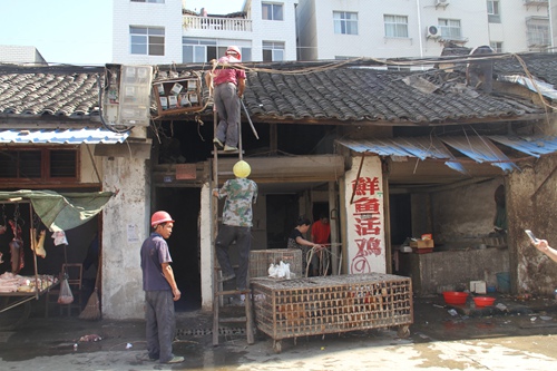 今日房县网讯 记者 唐玉 报道:6月26日,县棚改指挥部联合城关镇政府、县城市综合执法局,对东街棚户区危旧房屋现场拆除。