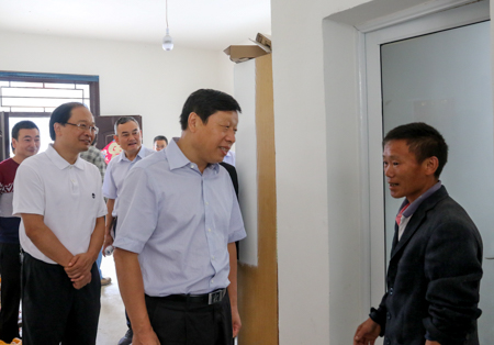 在尹吉甫镇珠藏洞村石灰沟,张维国查看易地扶贫搬迁安置小区建设入住情况,来到贫困户潘全江、曾长海、谢展森家中,了解询问生产生活、产业发展和各项扶贫惠农政策落实情况。