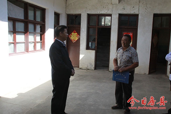 今日房县网讯 记者杨珩 报道:10月10日,县委副书记、县长纪道清到军店镇中村村走访慰问贫困户,了解他们近期生产生活情况和脱贫措施落实情况。