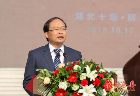县委书记蔡贤忠致欢迎辞。蔡贤忠首先代表淳朴好客的50万房县人民,向各位嘉宾的到来表示最热烈的欢迎。蔡贤忠说,房县历史悠久、人杰地灵,西周大师尹吉甫出生于此,食邑采风于此,留下了中华文化之元典《诗经》;自秦置房陵县以来,先后有唐中宗李显等14位帝王将相特放于此,宫廷文化沿袭传承;房县还是“野人”出没之地、神农尝百草之地,“野人”科考悬念丛生,神农文化根植深厚。这里山清水秀、环境优美;这里资源富集、物产丰饶,温泉饮浴俱佳,被誉为“中华泉水之冠”,香菇、木耳、 黄酒久负盛名,畅销海内外。