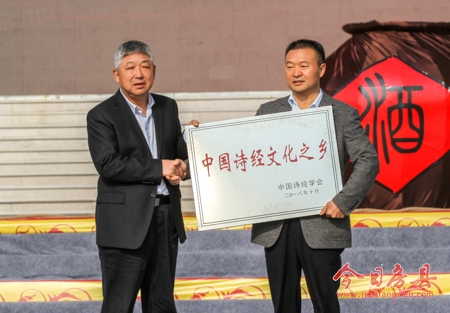 中国政法大学教授黄震云代表中国诗经学会授予房县“中国诗经文化之乡”