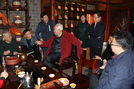 周韶华一行先后赴土城镇黄酒博物馆、房县诗经文化广场、军店老街、窑淮长峪河饶松青画院等地参观。期间,县委书记蔡贤忠、县长纪道清先后向周老一行介绍了我县诗经文化、黄酒产业及经济社会发展情况。周韶华对我县发生的巨大变化给予了充分肯定,他说,上世纪七十年代,我在原郧阳地区工作时来过房县多次,现在的城市建设、人民群众衣食住行变化太大了。他在了解到房县已将黄酒发展成为一个精准扶贫的富民产业时,尤为高兴,他说,四十多年前来房县大碗喝黄酒的印象太深了,说到高兴处,他召唤大家一同举杯,并说道“人生难得几回醉,莫待花落空折枝”。