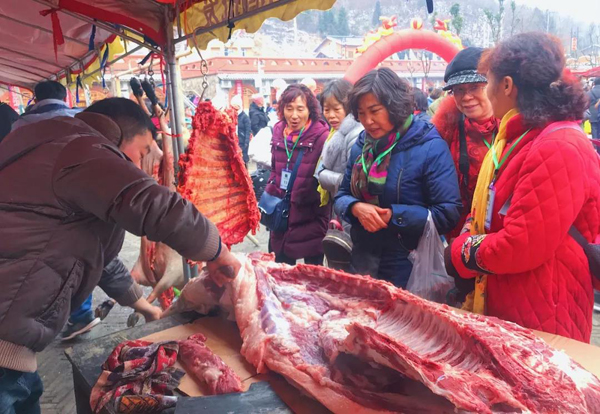 游客们共享年猪盛宴后,便来到年货展区采购年货。这里有传承千年的农家菜和地道的房县黄酒,是当地百姓“送祝礼”的必备佳品。“土味”十足的风味美食琳琅满目:炸卷卷、红薯粉、豆油精、土鸡蛋、烤玉米、烤红薯、魔芋、核桃,神农绿茶等等,让游客真正品尝到最地道的山珍美味,领略到最纯朴的乡土风情。