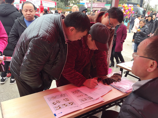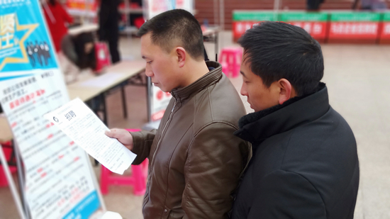 据悉,此次招聘会以“服务园区用工 助推精准扶贫 ”为主题,面向全县春节返乡农民工、建档立卡贫困群体和高校毕业生,招聘会将持续到2月15日(正月十一)。来自县内外110余家企业为就业人员提供涉及服务类、技术类、财会类等30余类工种,8500多个就业岗位,月工资水平从2000元-6000元不等。第一天上午,3500多名求职者现场对接,达成初步就业意向1800多人。