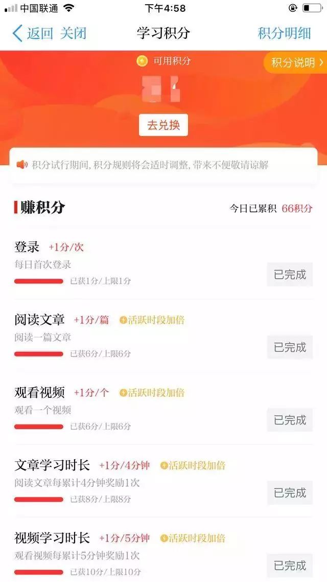 1、阅读同一篇文章、观看同一个视频都只奖励一次积分。