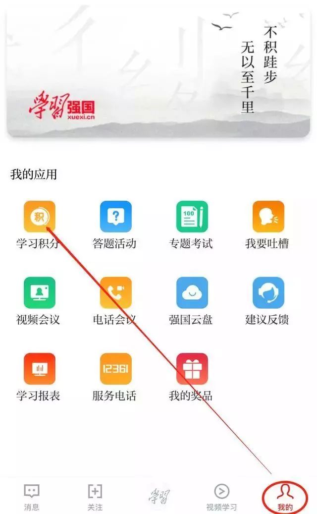 打开平台,点击右下角“我的”,然后选择“学习积分”。