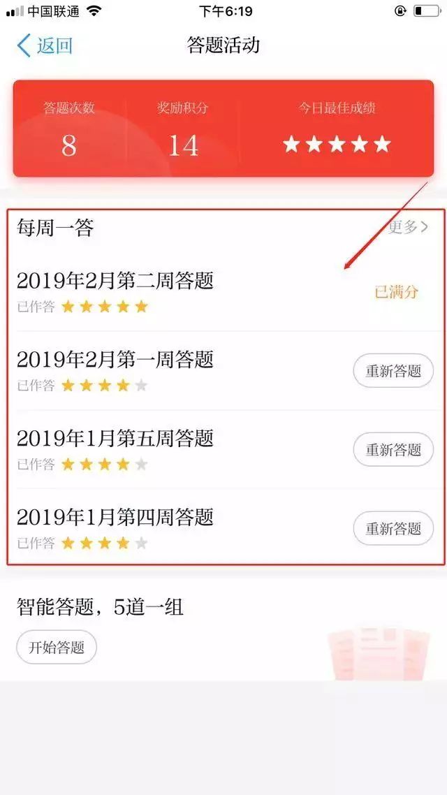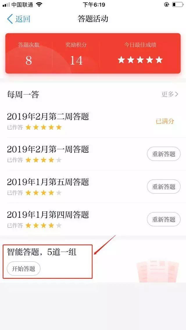 平台有“智能答题”“每周一答”“专题考试”三种方式答题获取积分。