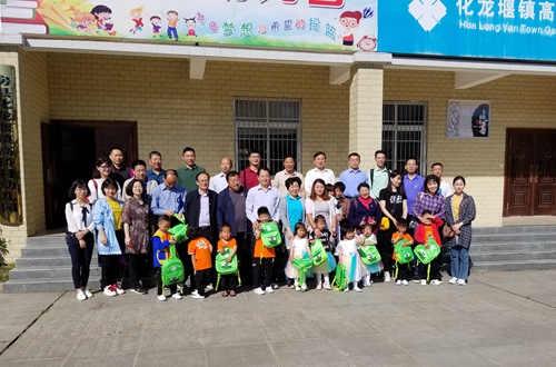 周向阳一行首先到化龙堰高桥村幼儿园走访慰问少年儿童,向孩子们送去价值1万元的文体用品。周向阳为该园“四点半学堂”揭牌,并代表省政协办公厅向学堂赠送了价值4万元的教学设备。期间,省直机关幼儿园老师还给孩子们上了一堂生动有趣的互动课,共同欢庆“六一”。
