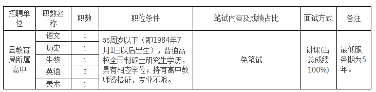 硕士研究生免笔试,采取面试与考核相结合的方式招聘,面试比例可放到1:1,如出现岗位空缺,将该计划调剂到高中紧缺岗位。其他岗位拟招聘人数与符合条件的报名人数开考比例原则上应达到1:3,对紧缺岗位达不到规定开考比例的,经招聘工作领导小组批准,开考比例可放宽到1:2。对仍达不到开考比例的将核减该岗位招聘计划,并将该岗位招聘计划调剂到其他岗位。