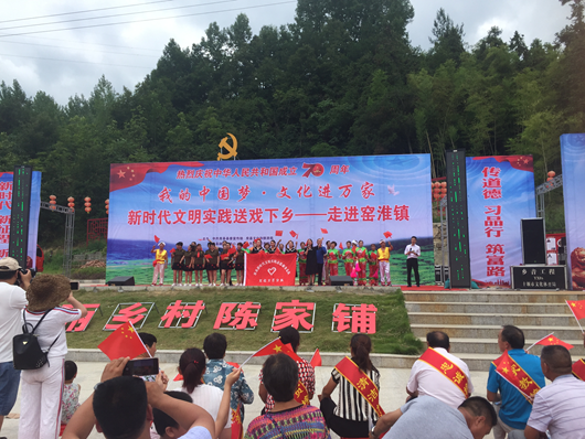 今日房县网讯 通讯员 文旅宣 报道:8月3日,根据群众“点单”需求,县文化和旅游局组织我县新时代文化文艺志愿者近百人深入到我县窑淮镇陈家铺村,参加“我的中国梦·文化进万家暨新时代文明实践送戏下乡——走进窑淮镇”活动。