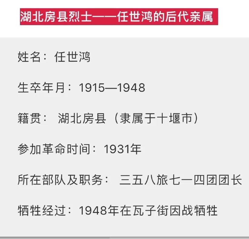 今日头条发起的“寻找烈士后人” 公益项目,让更多的人知道了房县籍烈士任世鸿的英雄事迹。