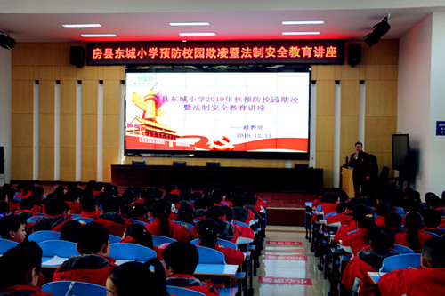 今日房县网讯 通讯员 李英 报道:为了加强校园安全教育,预防校园欺凌事件的发生,增强学生的自律和防护意识,12月11日下午,房县东城小学特邀请县检察院、该校法制副校长闵维走进校园宣传法律知识,为师生做了一场深刻而又生动的以“拒绝校园暴力,守护少年的你们”为主题的法制安全教育讲座。五年级全体师生聆听讲座。