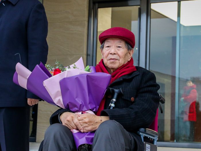 91岁高龄的房县籍著名书画家罗国士先生出席开馆仪式