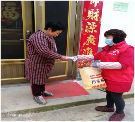 志愿者上门为居民发放口罩