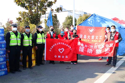 疫情当前,也时刻牵动着房县大爱义工联合会的义工们,在会长赵伟的带领下,他们立即行动,投身到疫情防控阻击战中。“如何有效组织义工们参加疫情防控志愿服务?怎样筹集医疗物资支援应情防控?如何有效合理分配筹集到的物资?义工的安全保障怎么样?……”带着这些问题赵伟与联合会其他主要同志通过微信开展了大讨论,最终决定成立物资协调组、物资发放组、后勤保障组。作为湖北省联合抗击新型肺炎的公益伙伴成员,赵伟迅速与孝感义工联取得联系,得知深圳壹基金将为湖北募集一批医疗物资,物资协调组的义工们迅速行动,多方协调,1月29日,由会长赵伟、义工杜勇、义工邹娥(女)主动提出驱车去孝感拉回首批物资,经过近三十个小时的时间,他们往返千余里,安全拉回了30000个口罩、1800个护目镜和20台对讲机,全部分发给一线医护人员、警察、新闻工作者、环卫工人等。2月1日,赵伟又同自己的“战友”驱车十堰拉回可口可乐60件、果汁50件、矿泉水1000件的物资,联合县妇联筹集到了康师傅方便面、伊利纯牛奶、火腿肠等物资,共同慰问在抗击新冠肺炎疫情一线的民警、医护人员;2月2日从孝感拉回消毒液10桶;2月6日,又争取到10000只一次性医用手套,全部分发给房县定点医院和发热门诊……源源不断的物资还在汇聚,爱的脚步也从未停歇。