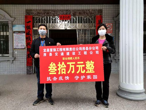 捐赠仪式上,宜昌富强工程有限责任公司房县分公司与房县交通建设工程公司联合捐赠30万元;湖北庐陵王酒业有限公司捐赠5万元; 中冶集团武汉勘测研究院有限公司捐赠2万元; 房县全季酒店捐赠1万元。