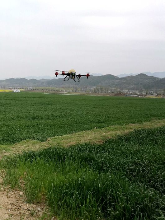 今日房县网讯 通讯员 刘林 何涛 报道:3月16日,在军店镇下茅坪村小麦条锈病防治现场看到,机手身穿工作服,将兑好的药水装在无人机机身上,无人机缓缓上升,连贯有序地来回喷洒作业防治小麦条锈病。与往年不同的是地里显得格外“冷清”,现场不见一个农民,只有1架无人机、2个操作手。