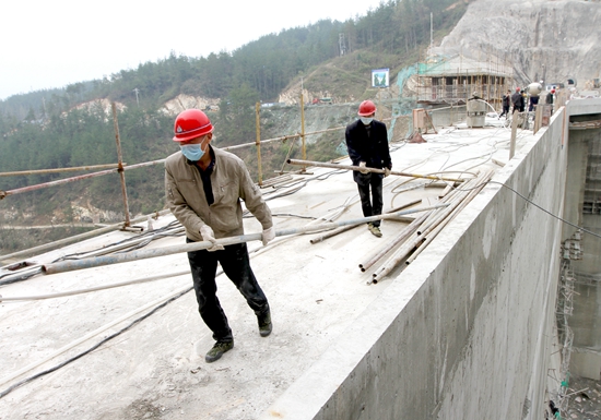 今日房县网讯 通讯员 张启龙 齐德平 宋建华 杨永德 赵彬 报道:3月24日,春光明媚,鄂西北最大的在建水源工程房县方家畈水库大坝顶端,搅拌机“一口口吐出”混凝土,工人们忙碌着建设大坝两侧护栏,像该工程建设一样,全县复工复产重点水利工程达17处。