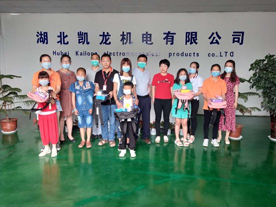 在湖北凯龙机电有限公司,5名困难职工家庭的孩子抱着崭新的书包,掏着里面的文具、学具,乐得合不拢嘴。一名孩子代表自豪地说:“感谢叔叔阿姨们给我们带来这么多的学习用品,我一定会勤奋学习,勇敢面对生活中的各种困难,长大后也要当一名关爱他人、传递温暖的小天使。”