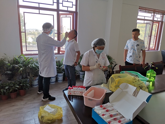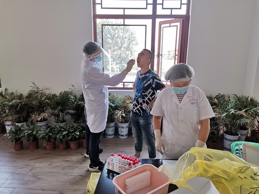 今日房县网讯 通讯员 施桥员 宋贝贝 刘慧荣 报道:6月29日,县疾控中心组成核酸检测专班,深入北京忠和房县生物食品有限公司为公司董事长王忠朝等一行7人进行咽拭子核酸检测,确保疫情防控不漏一人,扎实开展疫情防控工作,全面落实优化营商环境政策,为企业生产运营保驾护航。