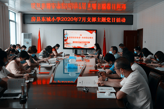 今日房县网讯 通讯员李英 报道: 建党日,不忘党。为庆祝建党99周年,进一步激发党组织和党员干事创业的责任感和使命感,7月1日,房县东城小学全体党员以“庆祝党的生日,勇担初心使命”为主题,召开了7月份支部主题党日活动。