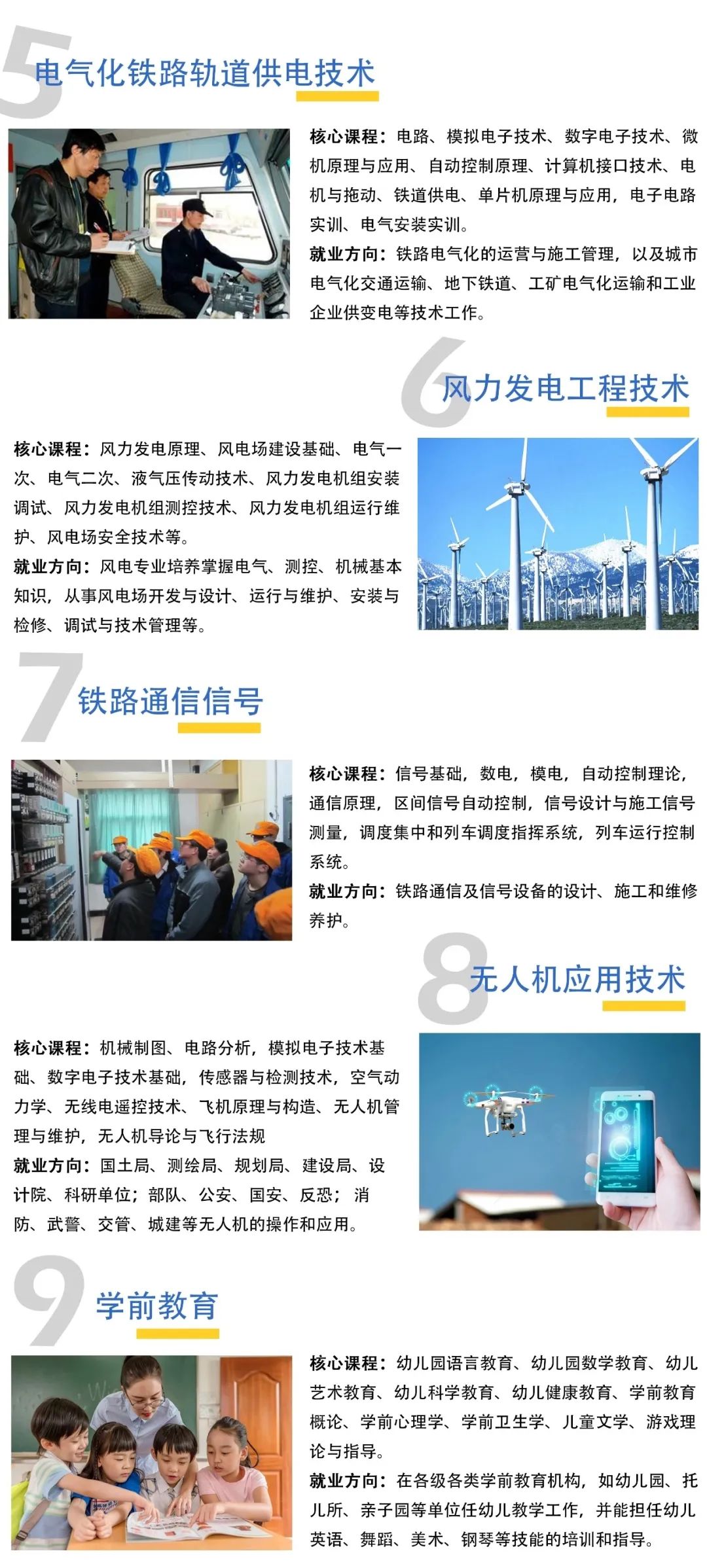动车制造与检修电气化铁路轨道供电技术铁路通信信号铁路工程技术