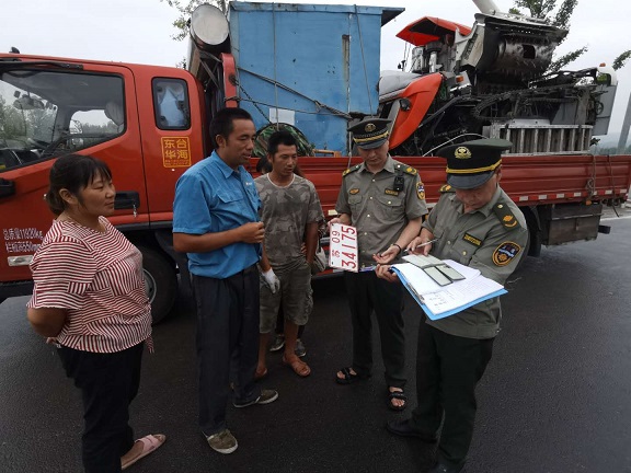 经查,绝大部分从事水稻跨区机收的联合收割机跨区作业证,号牌,驾驶证,行驶证齐全,安全技术状况良好。极个别联合收割机存在证驾不符现象(没有联合收割机驾驶证,仅持有拖拉机或汽车驾驶证),农机监理执法人员对其进行了批评教育,责令其限期整改,确保机收作业安全。