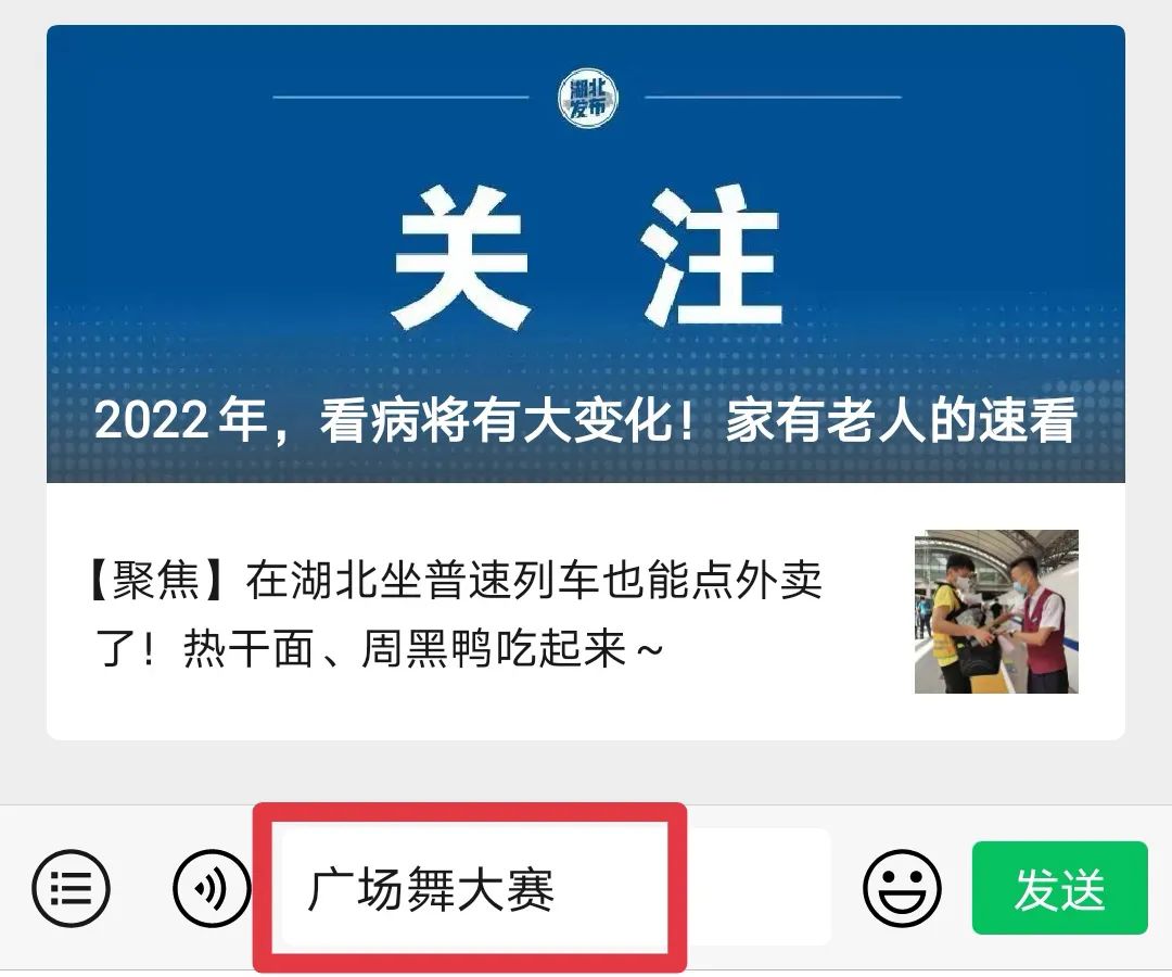 方法二:您也可以在对话框中输入“广场舞大赛”“广场舞”等关键词参与投票。