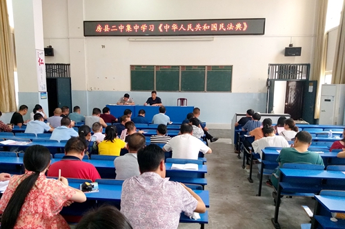 今日房县网讯 通讯员 徐国元报道:为普及民法典知识,营造学习宣传民法典的浓厚氛围,近日,县二中召开全体教职工会议集中学习了《中华人民共和国民法典》。