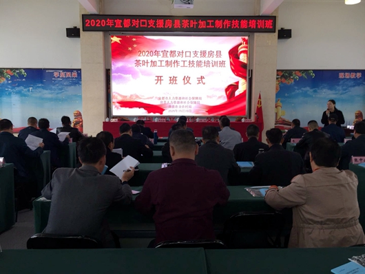 今日房县网讯 通讯员 唐波 报道:为进一步深化宜都市·房县区域协作扶贫工作,落实区域对口帮扶项目,充分发挥区域优势,促进我县茶叶产业发展,提升我县茶农茶园栽培管理、茶叶制作加工技术及茶叶营销品牌的打造,近日,房县人社局、农业农村局组织我县50名茶农赴宜都市参加由宜都市人社局为我县茶农组织的“2020年宜都对口支援房县茶叶加工制作培训班”。