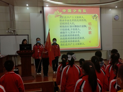 开展“鲜红的旗帜,光辉的历程”主题活动。大队辅导员运用队会课,和少先队员们一起再次重温了少先队知识,练习敬标准的队礼,知晓队礼的意义,规范红领巾佩戴、呼号。大家在辅导员的带领下观看视频,一起回顾英雄小故事、合唱少年先锋队队歌、欣赏不同年代的红色歌曲,感知少先队的光辉历程和光荣传统。全体少先队员一起接受红色文化洗礼,将红色基因一代一代传下去。