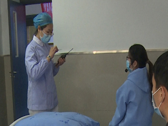 “19床患者,王媛媛,让我看一下您的体温表可以吗?体温37.5,有点低热,请不要紧张。”管床护士在例行查房时发现病人有发热症状,护士迅速向管床医生进行汇报,随后医生来到病房对患者进行病情核查。