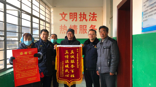 今日房县网讯记者何赛男报道:隆冬时节,寒风凌冽。但在县城市管理执法局的院子里却迎来了暖心的一幕。一大早,家住在下西关社区的居民将一面印有“真情温暖民心,真诚服务百姓”的锦旗送到执法局。向执法局工作人员送上最真诚的感谢。